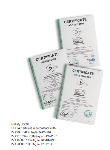 Kerb-Konus-Vertriebs-GmbH具有以下認證: